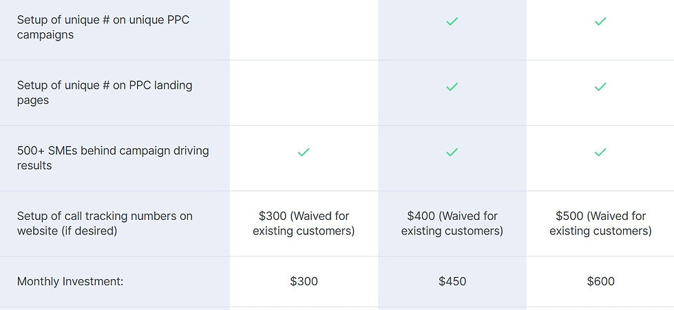 Web marketing channel call tracking & ROI reporting pricing